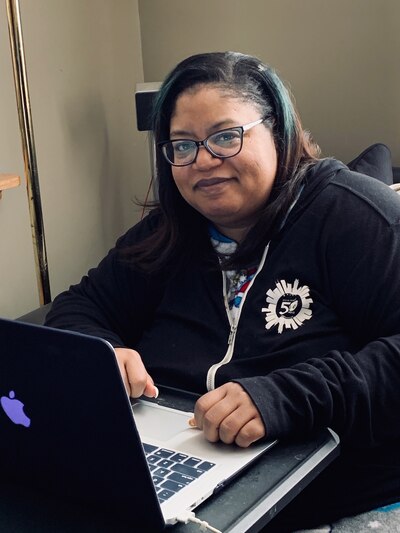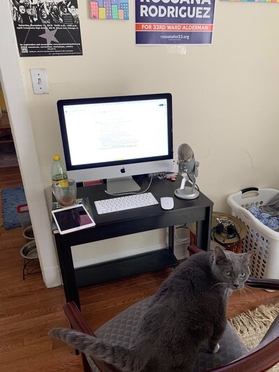 Social worker Alyssa Rodriguez works from her Wrigleyville home office.