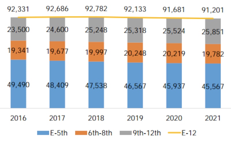 2. By 2021, enrollment is forecast to be down to 91,201 students.