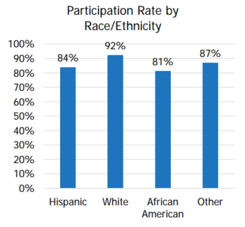 10. Denver has universal school choice, which means students can request a seat in any of the district’s traditional, innovation or charter schools. White students participate at a higher rate than non-white students. But English language learners and non-English learners participate at the same rate: 83 percent. This year, 4,400 students in the so-called transition grades of kindergarten, sixth and ninth grade who participated in school choice and whose assigned schools are lower performing are attending a school the district considers high quality.