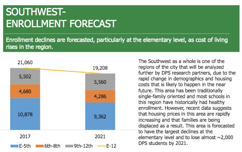 This year is the first that Denver Public Schools commissioned an independent, five-year enrollment forecast as part of its annual “strategic regional analysis,” which also examines school capacity and performance in an attempt to identify trends and issues.