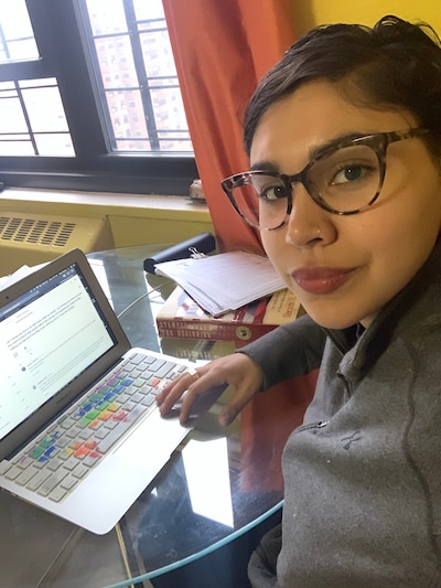 The English department at M.S. 447 is easing its students into online learning. Day one was a review of expectations now that classes are online, and what each day’s schedule would look like. By 2:45 p.m., almost all of Garcia’s students had submitted their assignments for the day.